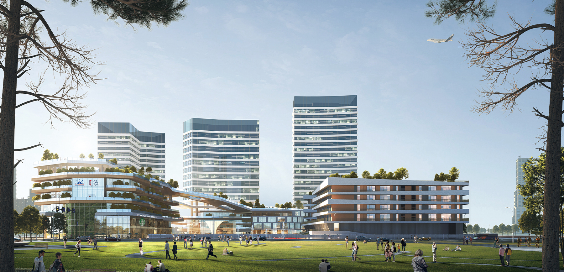 Education complex, exchange center, school, office, living facilities